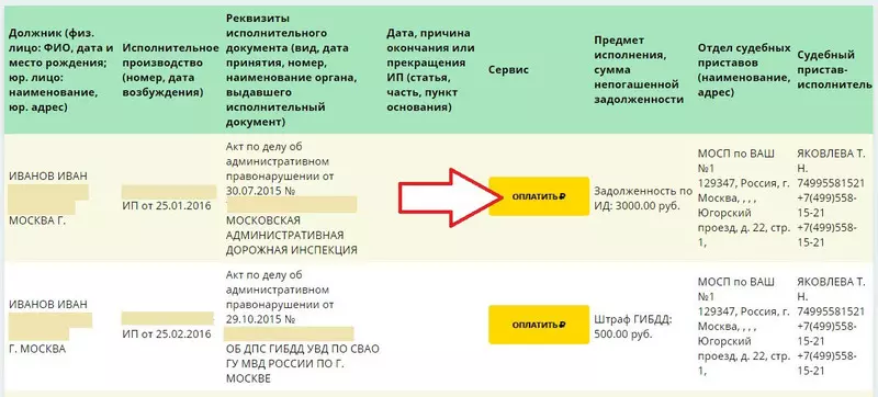 Если вы искали задолженность по фамилии, прежде чем приступать к оплате, убедитесь, что долг действительно принадлежит вам, а не однофамильцу. Внимательно изучите данные в 1-ой колонке таблицы - в ней указаны фамилия, дата и место рождения должника.