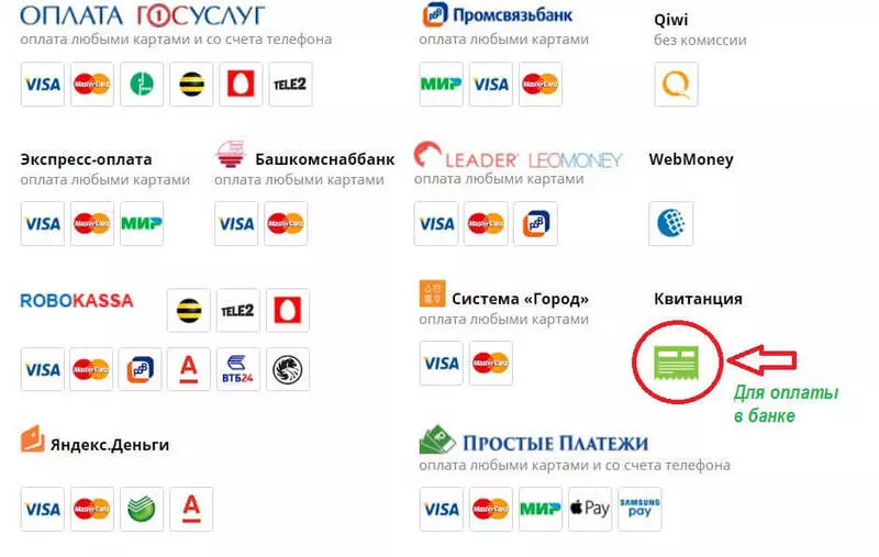 3Нажмите на кнопку "Оплатить". Появится табличка с возможными вариантами перечисления средств.