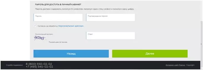 Придумать пароль и ввести ответ на контрольный вопрос.