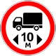 Запрещается движение транспортных средств с дистанцией между ними меньше указанной на знаке. Действует до первого перекрёстка, в населенных пунктах при отсутствии перекрестка – до конца населенного пункта, либо до знака 3.31 . Действие знака не прерывается в местах выезда с прилегающих к дороге территорий и в местах пересечения (примыкания) с полевыми, лесными и другими второстепенными дорогами, перед которыми не установлены соответствующие знаки. Зона действия знака может быть уменьшена применением таблички 8.2.1 |