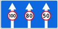 Кроме того, знаки серии «Направление движения по полосам» могут предупреждать о допустимом скоростном режиме на каждой из полос или на отдельно взятой полосе. Могут вводить запрет на движение по одной из полос, к примеру, конкретно для грузовиков определенной массы.