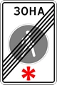 Отменяет действие знака 5.1. Цифра указывает расстояние в метрах, через которое действие знака 5.1 закончится. Водитель должен быть готов сбросить скорость и приготовиться к возможному перестроению на другую полосу. |