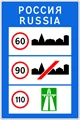 Направления движения к пунктам маршрута. На знаках может быть указано расстояние до обозначенных на нём объектов (км), нанесены символы автомагистрали, аэропорта и иные. |